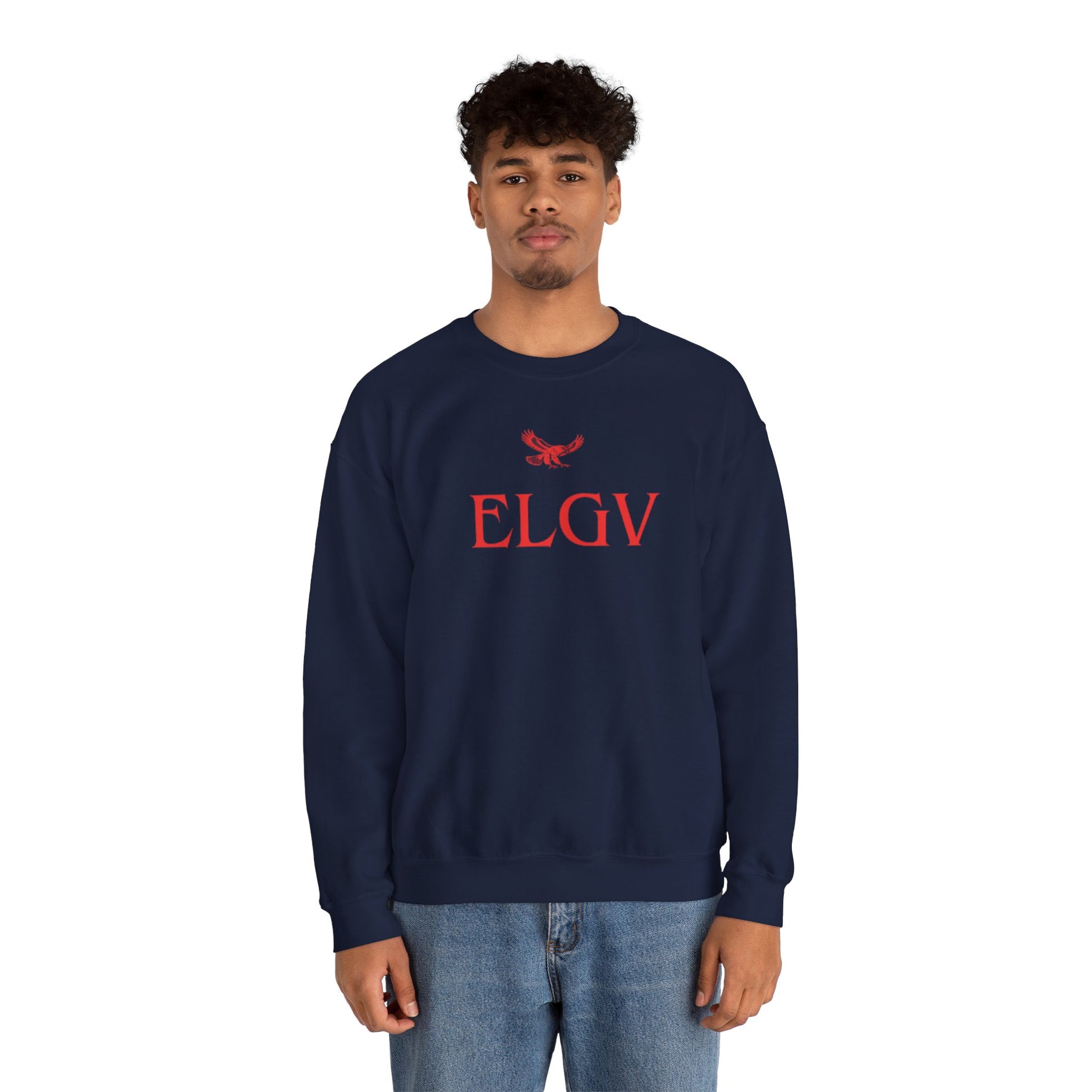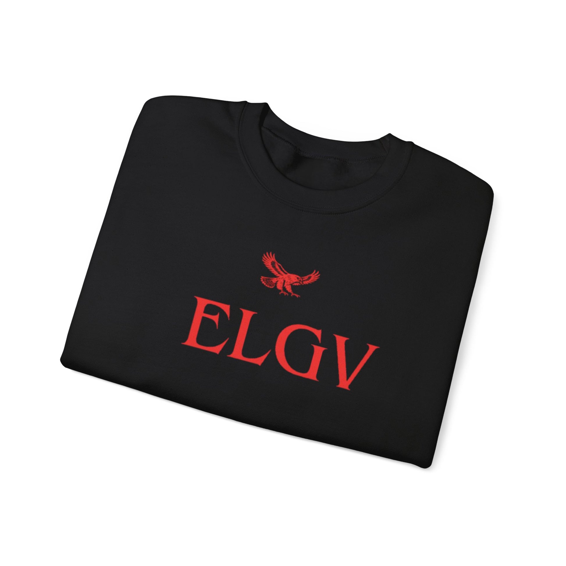 This ELGV sweatshirt features striking red ELGV wording paired with iconic eagle logo , symbolizing power, vision, and elevation. The contrast commands attention while keeping the design clean and intentional.